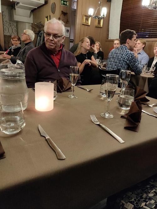 Tilaisuuden avasi seuramme varapuheenjohtaja Terho Kaaja. Terho huomioi puheessaan 50 v seuran sihteerinä toimineen Kauko Järvisen joka on edelleen johtokunnan jäsen ja Tuula Kangasniemi-Salmen, joka tähän mennessä ollut seuran talodenhoitaja 41:ttä vuotta. TUL:n tervehdyksen toi Tampereen piirin toiminnanjohtaja Jukka Nieminen. Tämän jälkeen ruokailtiin. Ruokailu lomassa keskustelu solui, kuinkas muuten, vanhojen painimuistojen ja kisasaavutusten parissa. Tarinoita riitti, naurua ja kysymyksiä heiteltiin. Onneksi ei kuitenkaan lähdetty painiheittoja tekemään.