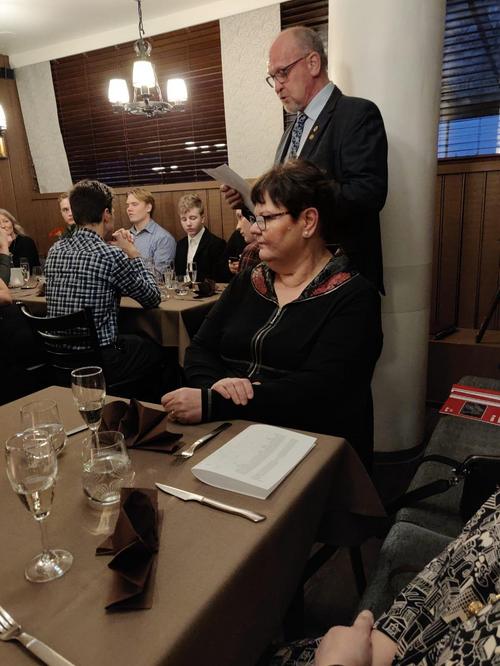Ruokailun jälkeen Terho luki Taiston ajatuksia seuramme perustamisesta sekä jaettiin seuran pöytäliput Jukka Niemiselle, johtokunnan jäsenille Linda Uschanofille, Leevi Lindroosille, Alina Salmelle sekä Jarno Lindroosille. Tämän jälkeen piti puheenvuoron valmennuksesta ja sen tavoitteista Jarno. Puheenvuoron painimuistoista käytti myös Jukka-Pekka Tanner, jolta tarinoita olisi riittänyt varmasti enemmänkin.
